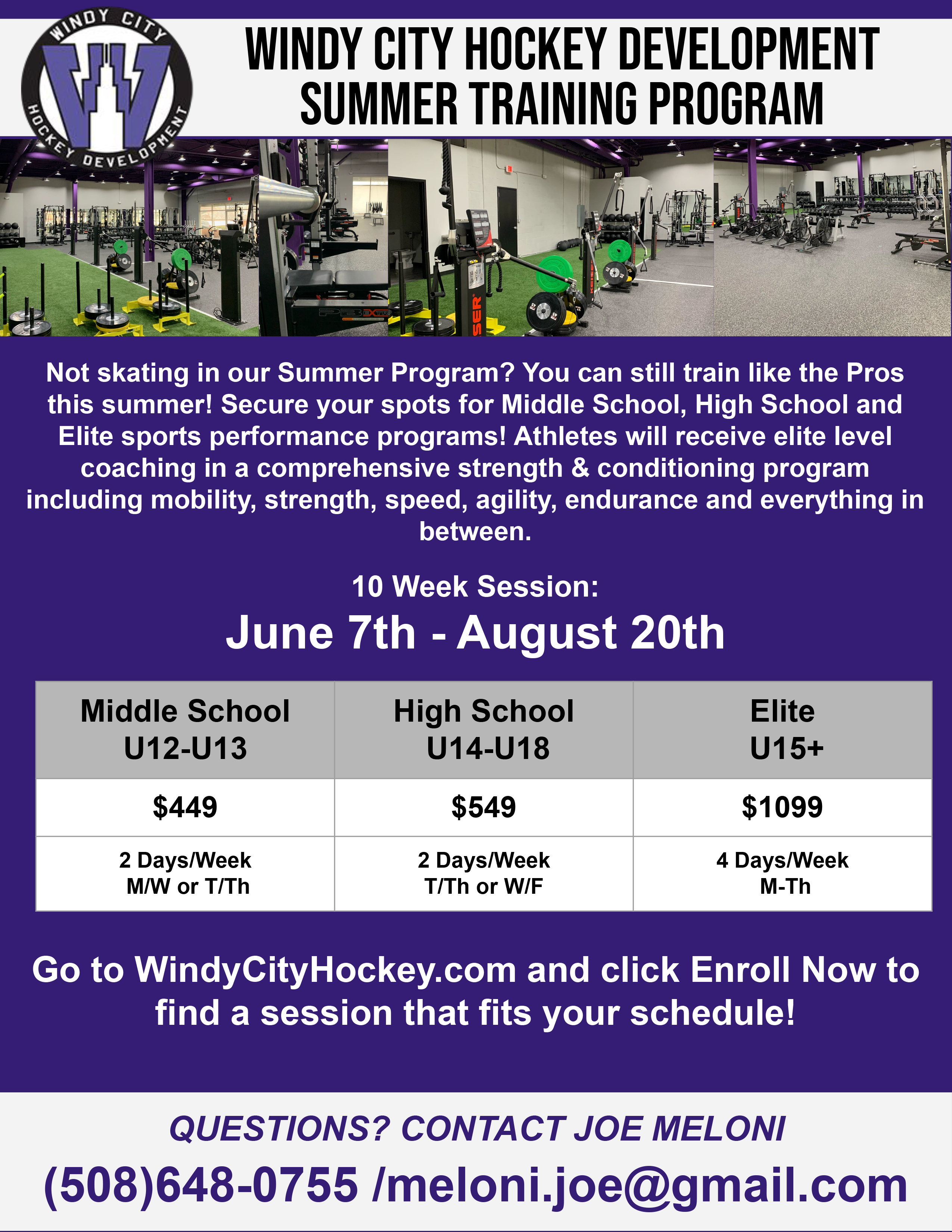 Not skating in our Summer Program? You can still train like the Pros this summer! Secure your spots for Middle School, High School and Elite sports performance programs! Athletes will receive elite level coaching in a comprehensive strength & conditioning program including mobility, strength, speed, agility, endurance and everything in between
